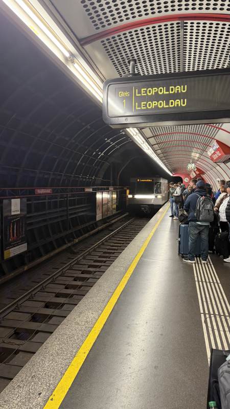 Nach pünktlicher Ankunft in Wien bringen wir unsere Rucksäcke in einem Schließfach unter (immer noch nur mit Bargeld zu bestücken, zurzeit 3,50 € für 24 Stunden).