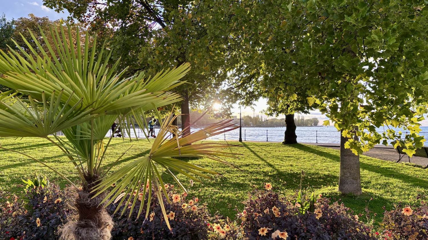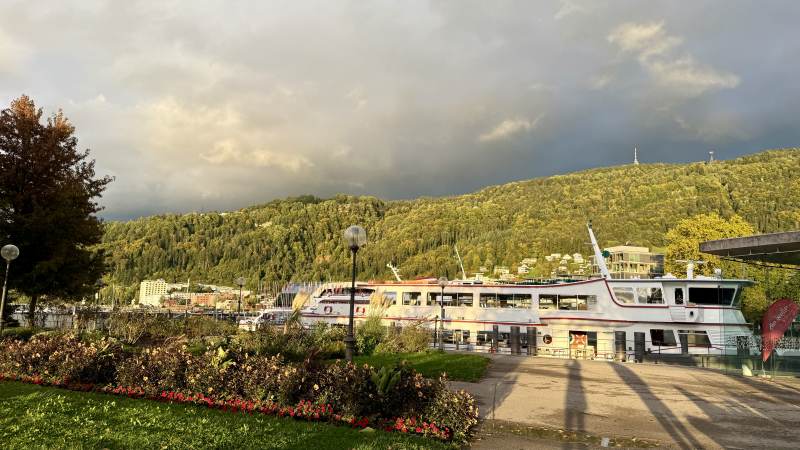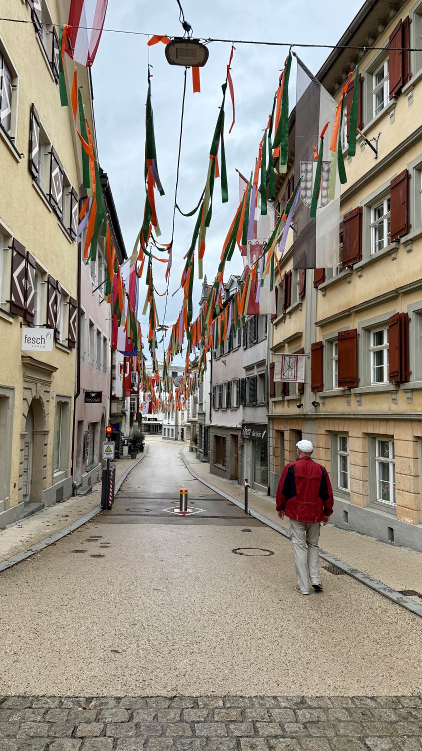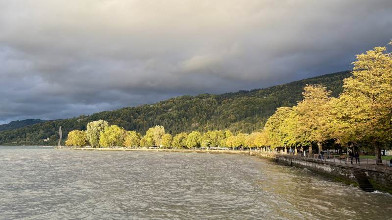 Wir erreichen Bregenz bei etwas regnerischem Himmel, der den eher (80er-Jahre-)modernen Stadtteil Richtung Bodensee etwas „uninspiriert” erscheinen lässt. Der See selbst wirkt aber sofort, und später erreichen wir auch die durchaus schönen Straßen und alten Gemäuer in der Oberstadt. Das Theatercafé offeriert leckeren Kuchen, alles bestens.