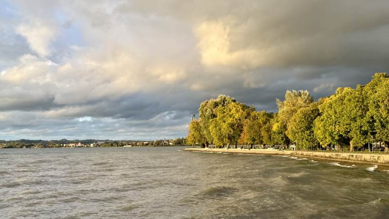 Zum Abend hin klart es auf, mit faszinierenden Lichtspielen am See, bevor wir zum Essen im Augustiner-Bräu einkehren, das uns zünftig-leckere Speisen serviert.