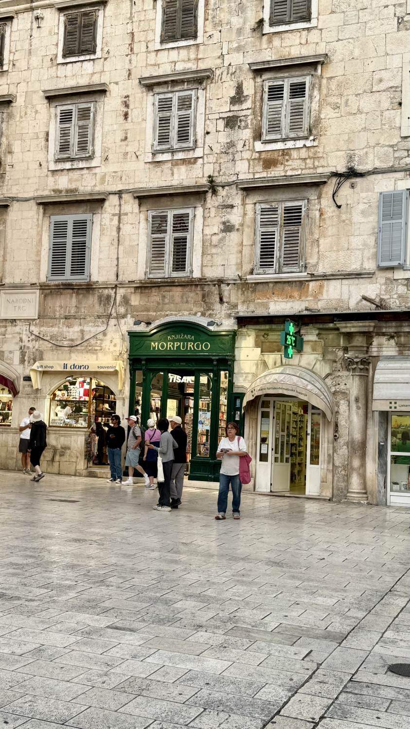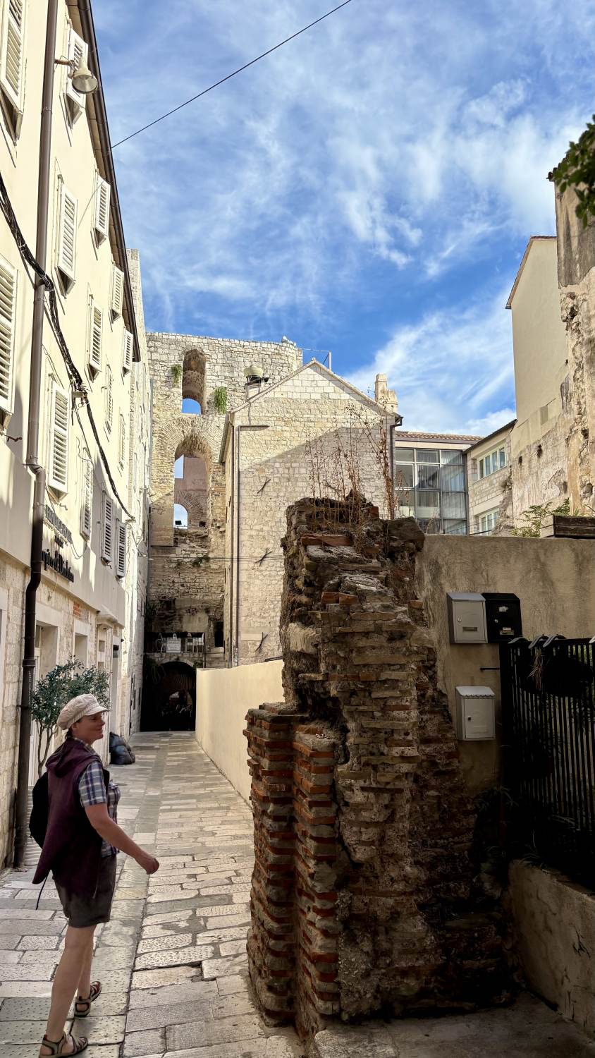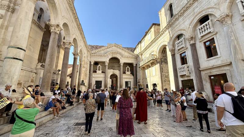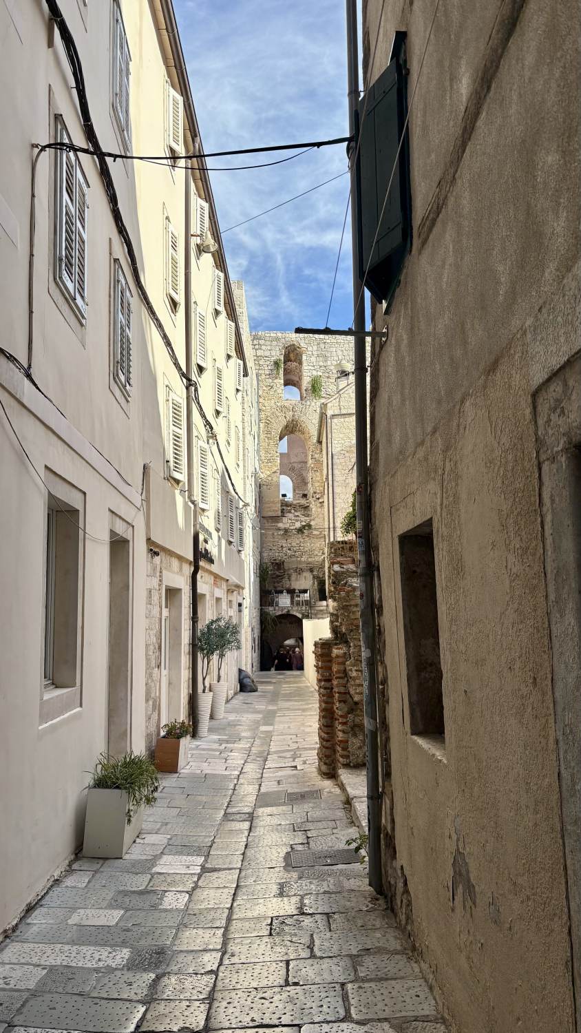 Zurück in der Stadt beziehen wir unser Zimmer im Jupiter Heritage Hotel (passend benannt nach dem Jupiter-Tempel nebenan), bevor wir eine weitere Erkundungstour durch die malerischen Gassen unternehmen — sehr wuselig alles, teilweise sehr touristisch mit den typischen Läden, aber sehr sympathisch. Und überall der historische Boden auf dem Gelände des einstigen Diokletian-Palastes.