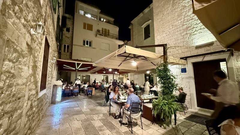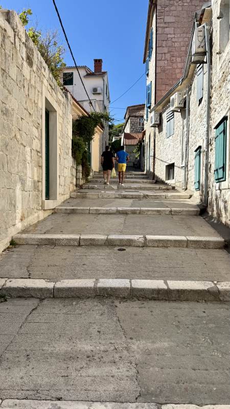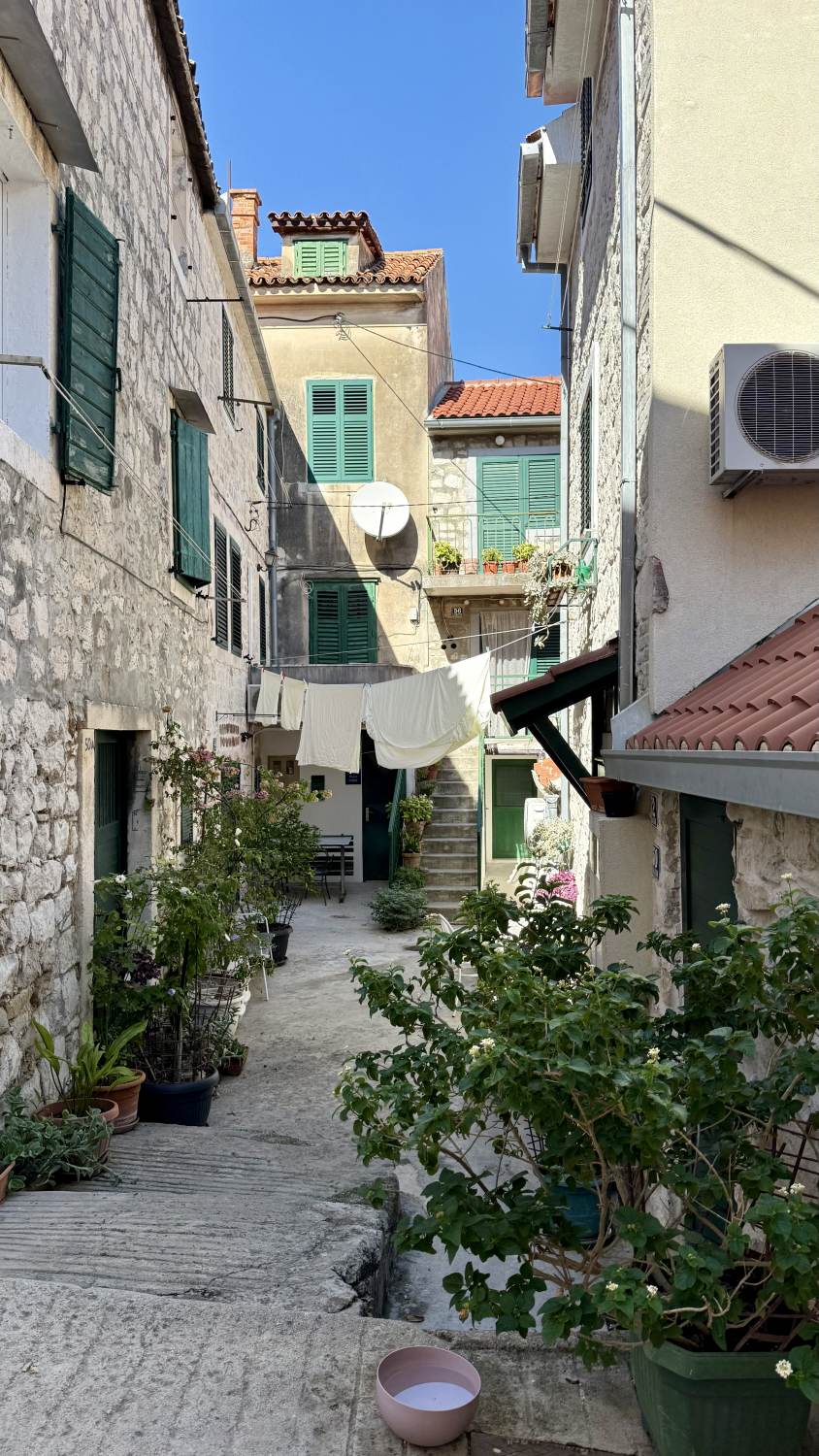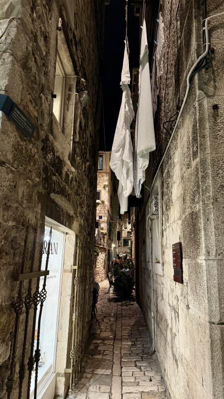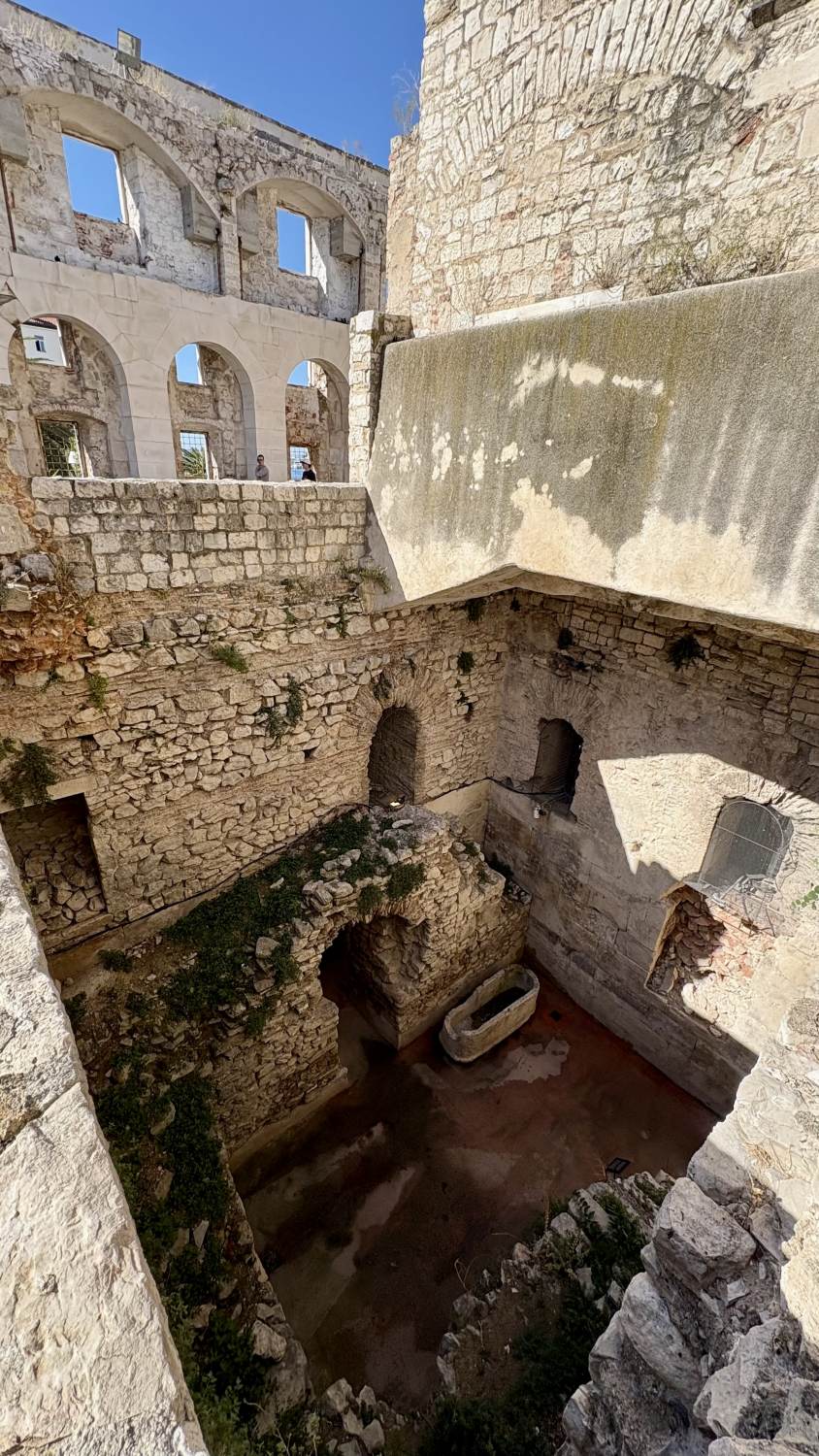Zurück in der Stadt beziehen wir unser Zimmer im Jupiter Heritage Hotel (passend benannt nach dem Jupiter-Tempel nebenan), bevor wir eine weitere Erkundungstour durch die malerischen Gassen unternehmen — sehr wuselig alles, teilweise sehr touristisch mit den typischen Läden, aber sehr sympathisch. Und überall der historische Boden auf dem Gelände des einstigen Diokletian-Palastes.