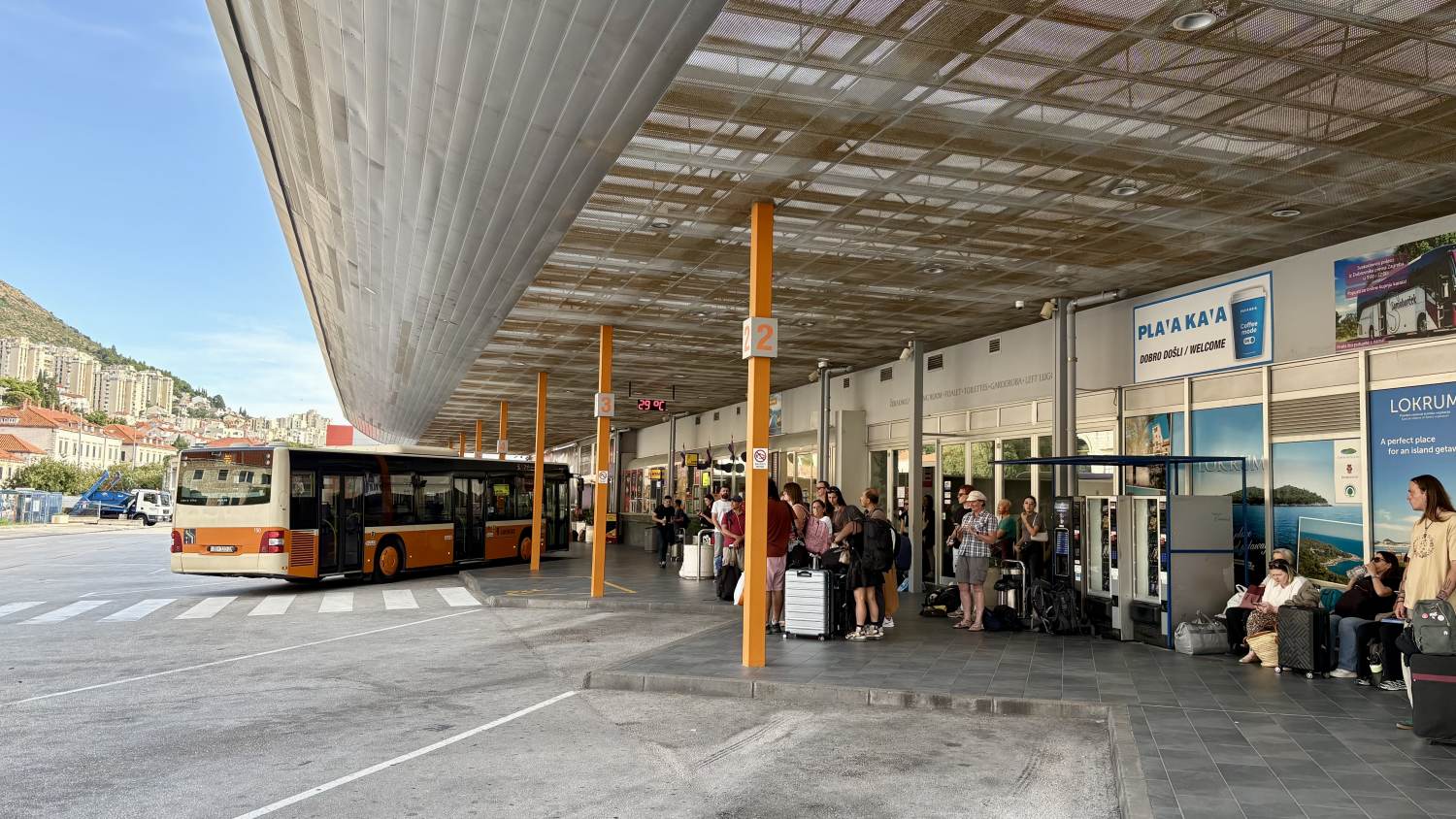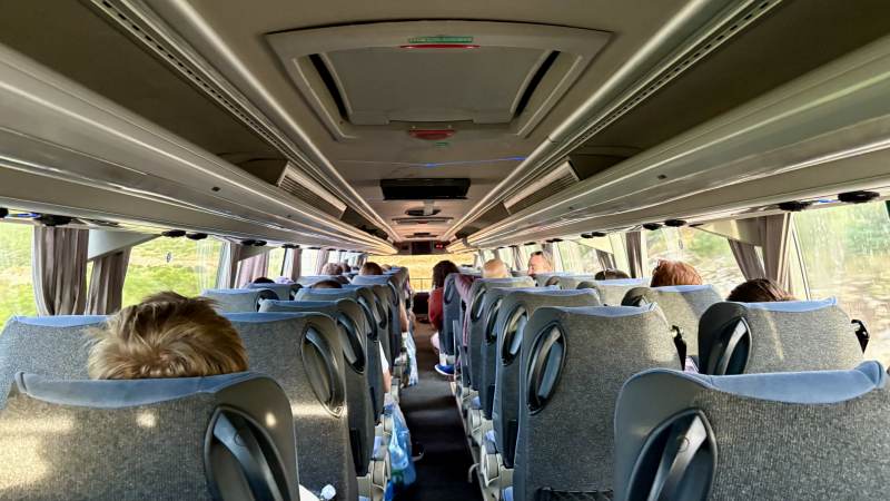Nachdem uns das gelungen ist, fehlt nur noch der Bus, aber der lässt auf sich warten. Infos Fehlanzeige. Mit 45 Minuten Verspätung geht es schließlich los.