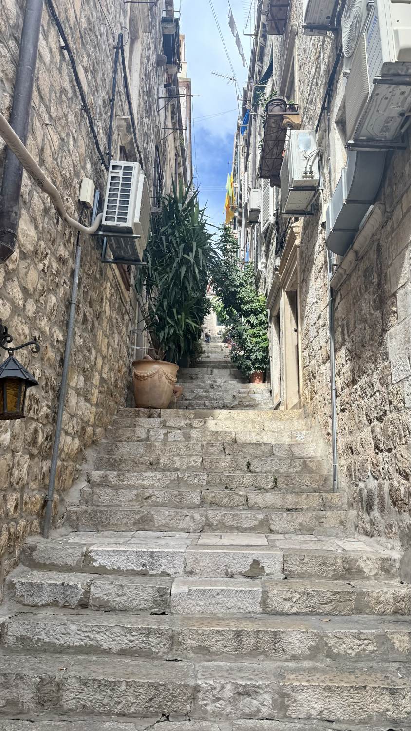 Danach bleibt noch Zeit für einen Spaziergang durch die steilen Nebenstraßen, die hoch an die Mauer führen. Die Mauer selbst heben wir uns für einen erneuten Besuch auf, weil man dafür separate Tickets und mehr Zeit bräuchte, als wir haben.