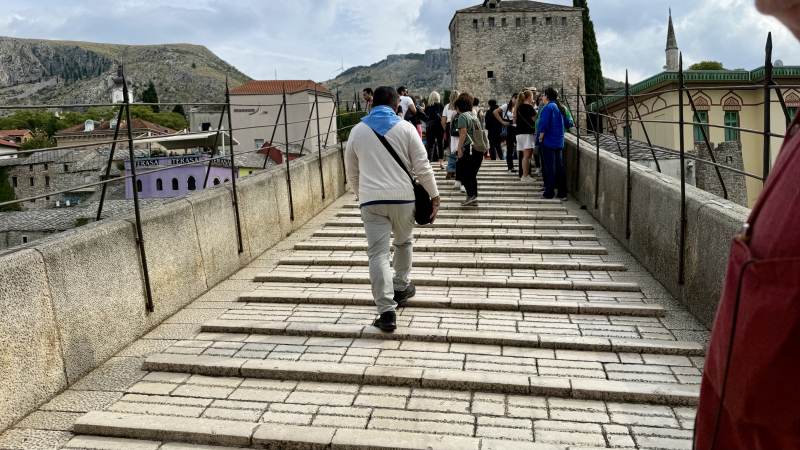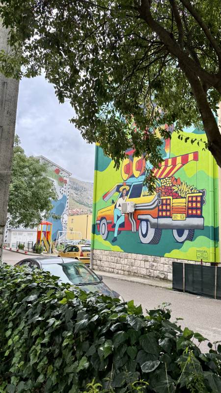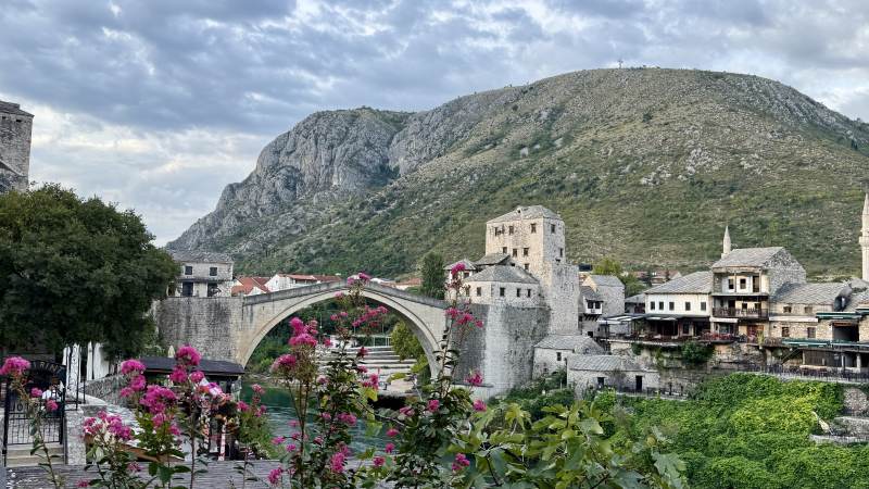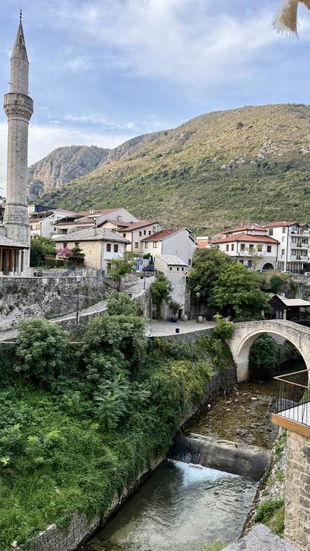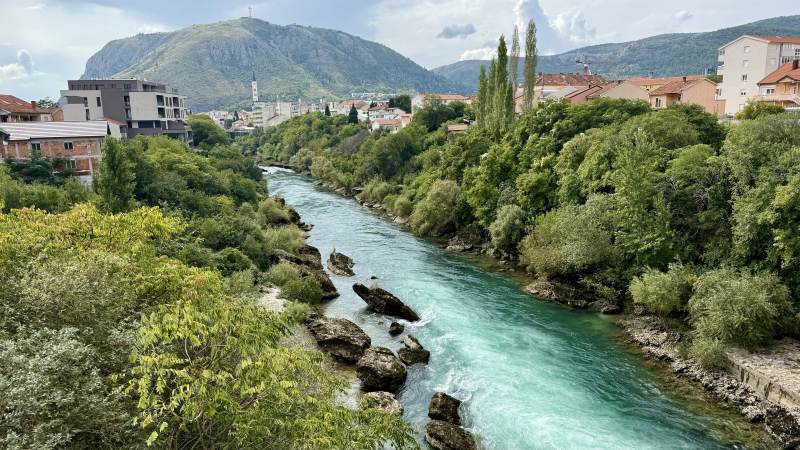 Das ausnahmsweise regnerische Wetter und die dreckigen Scheiben verhindern weitestgehend das Fotografieren, aber der Blick auf die schroffen Hügel, durch die der Fluss Neretva sich schlängelt, ist trotzdem immer wieder hinreißend.