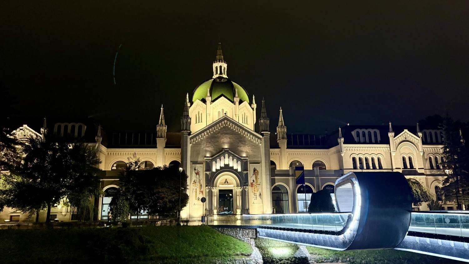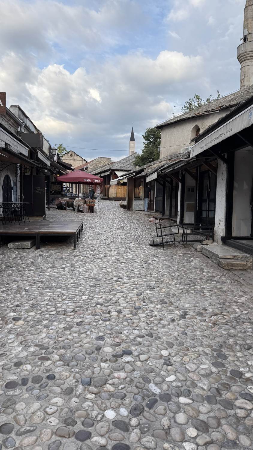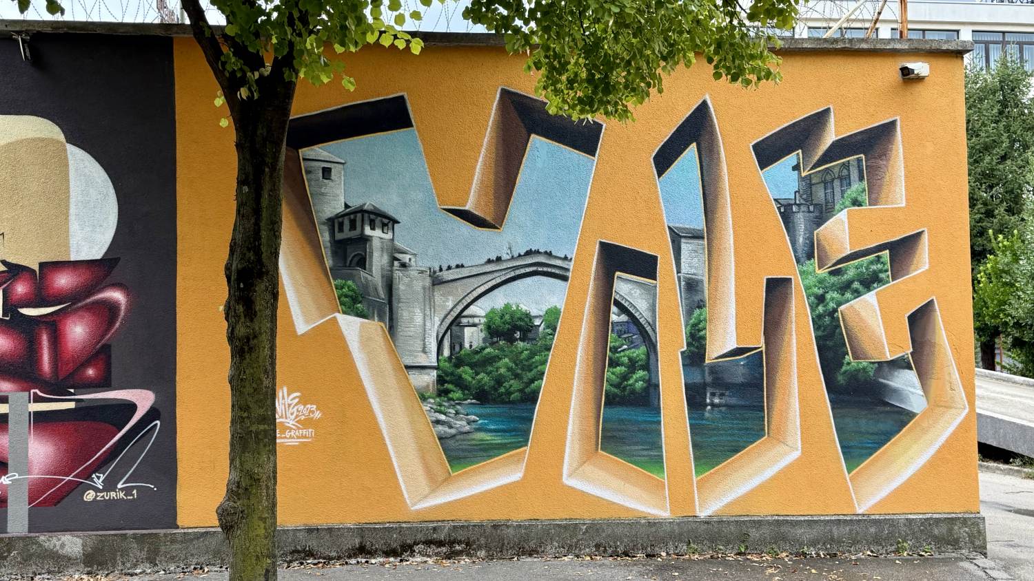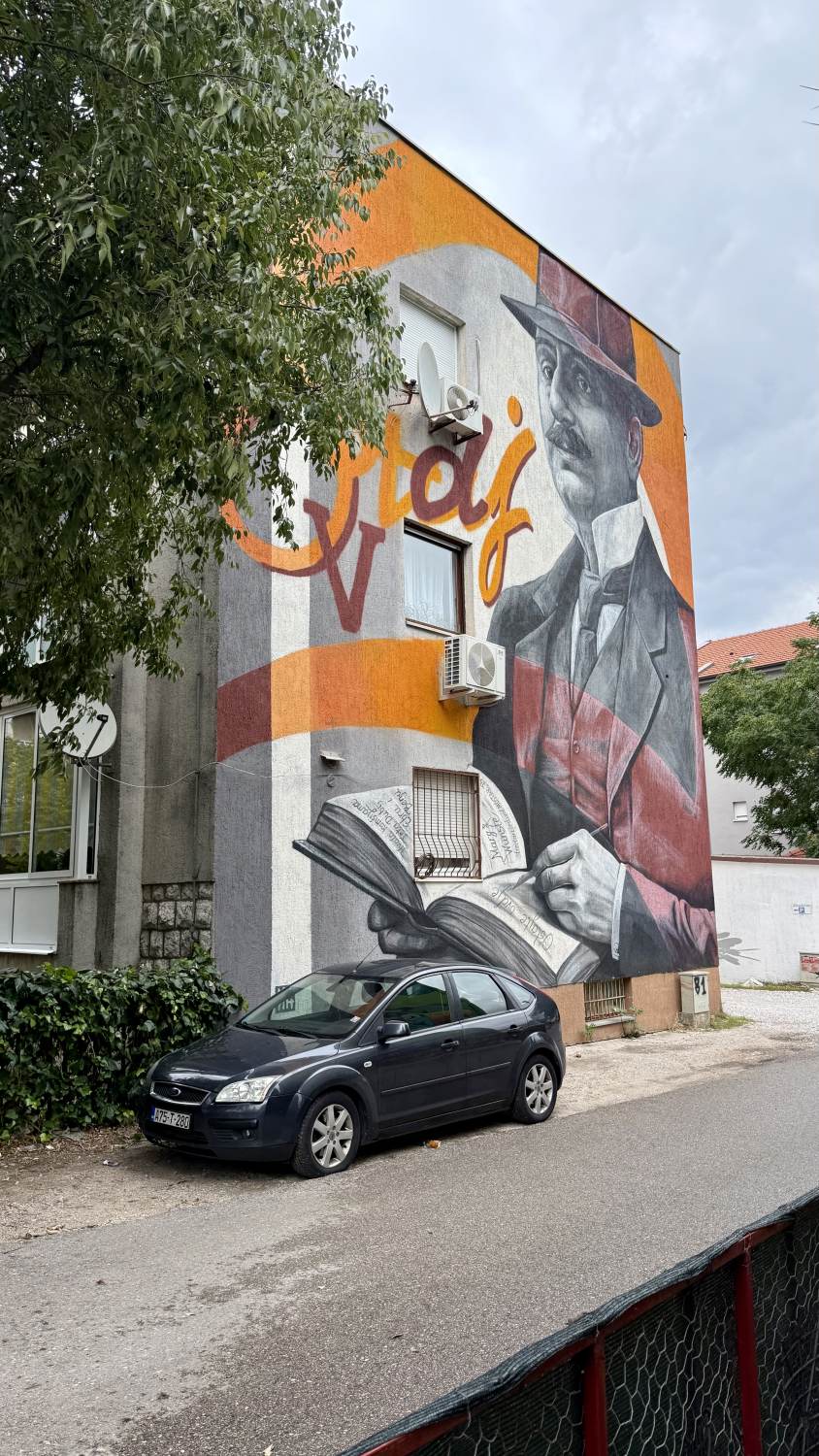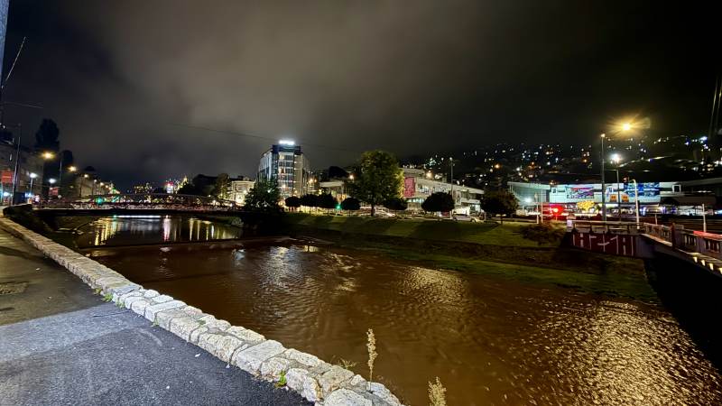 Sarajewo erreichen wir nach Sonnenuntergang, an einem Bahnhof, der einer Hauptstadt auch nicht so ganz würdig ist. In der Stadt nehmen wir erstmal hauptsächlich breite dunkle Straßen wahr, auf denen Fußgänger keine besonders große Rolle spielen. Auch am Fluss verläuft eine vierspurige Straße.