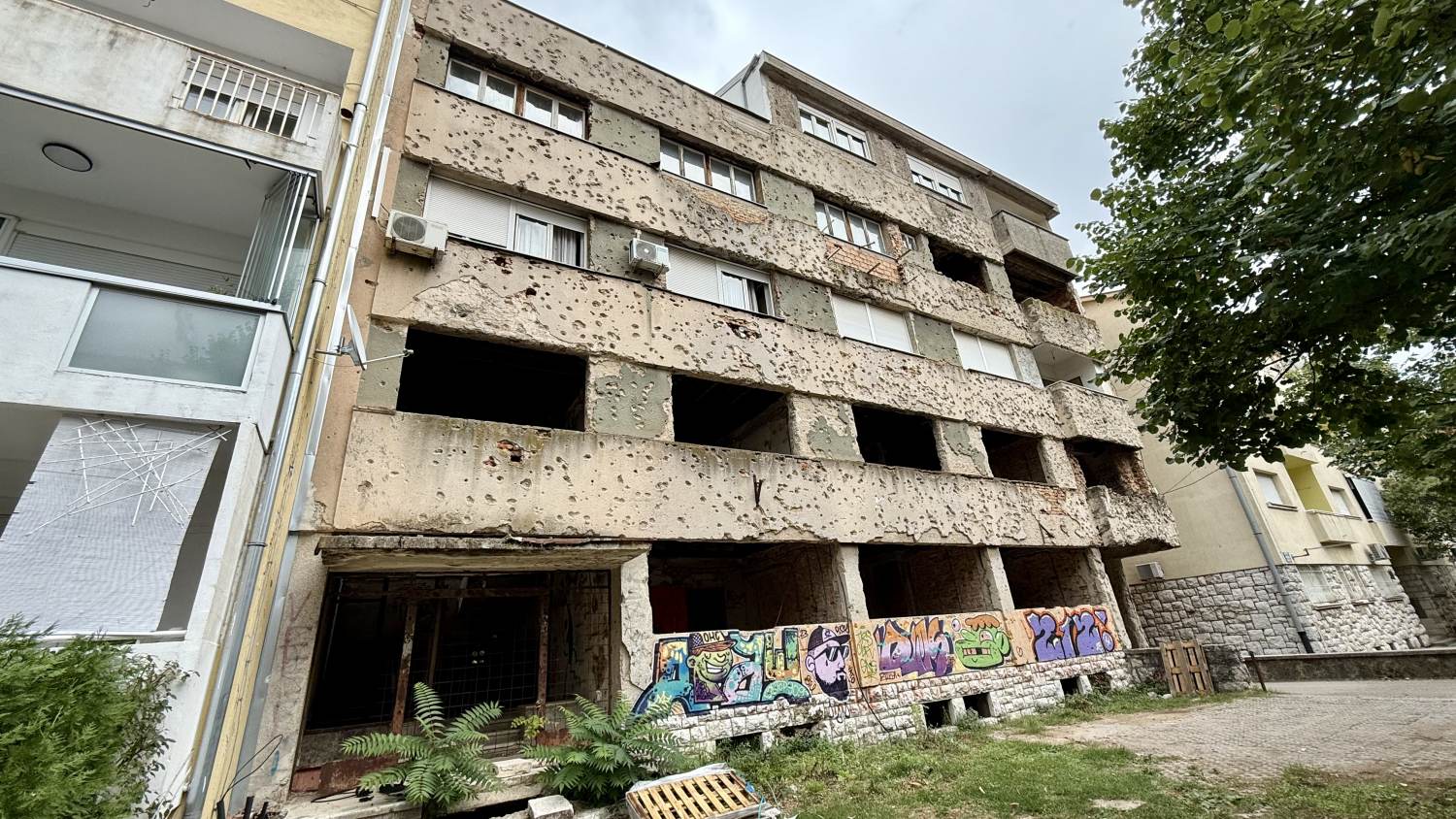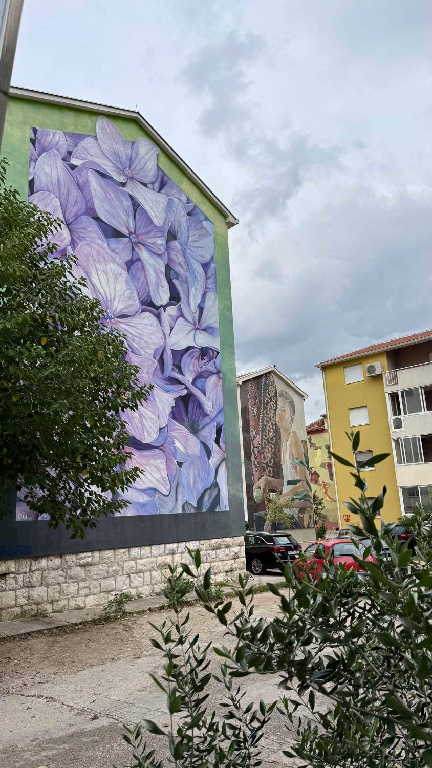 ganzen Gebäudeensemble mit wunderschönen Wandgraffitis.