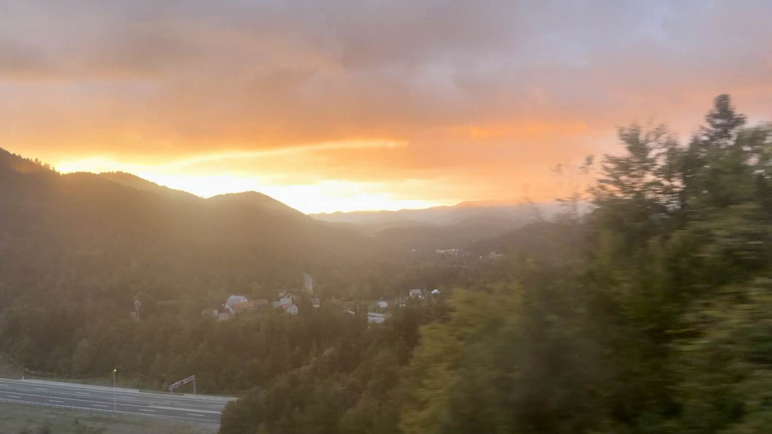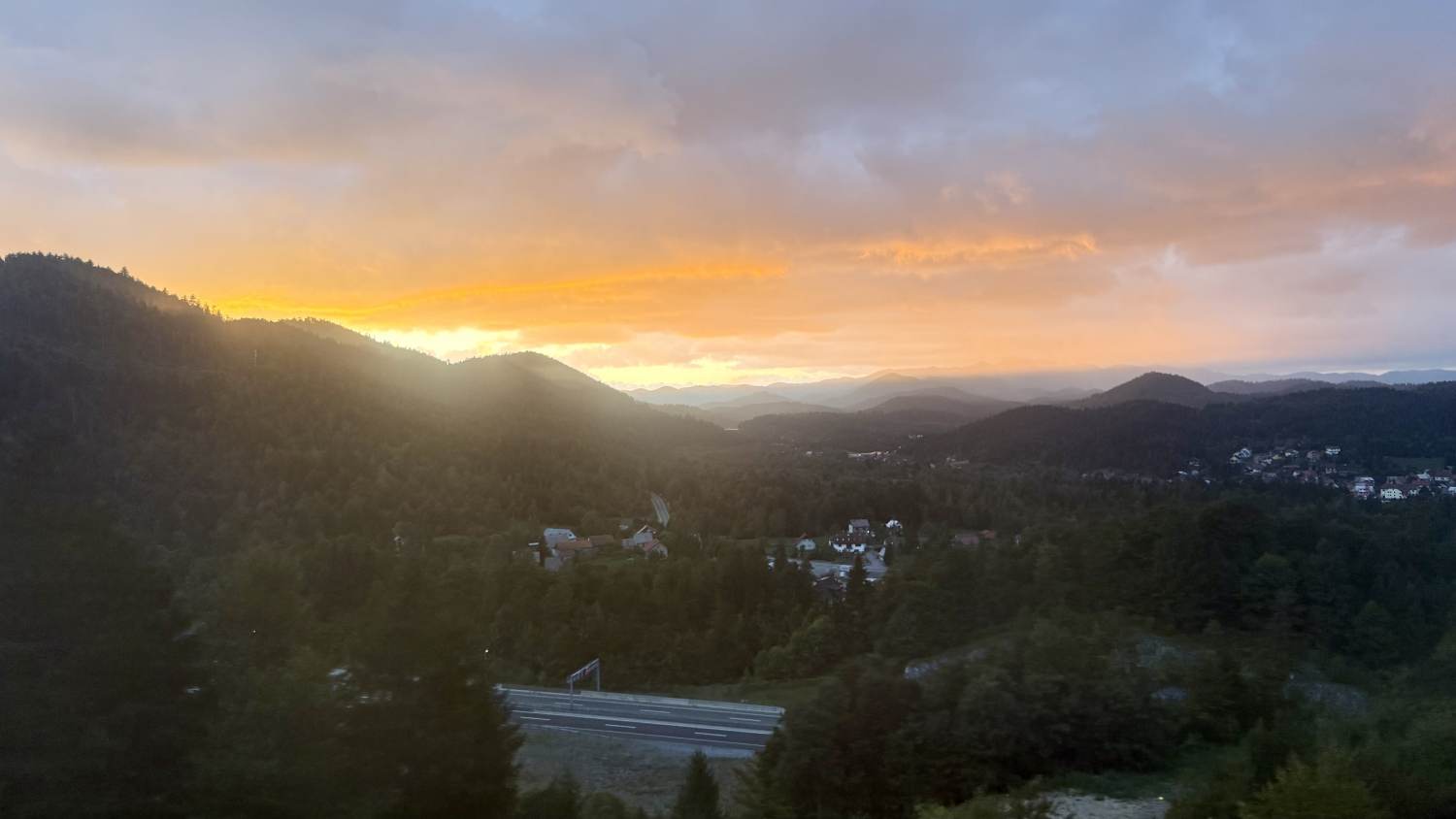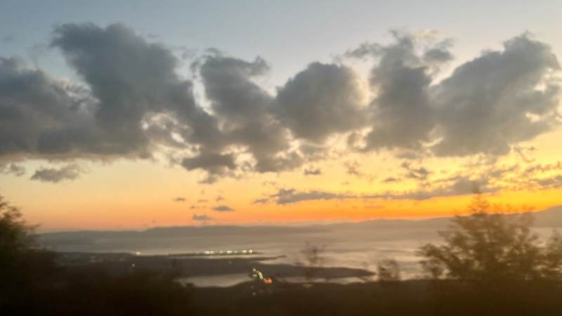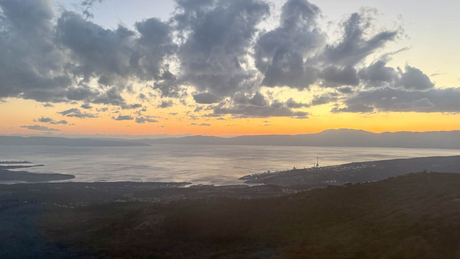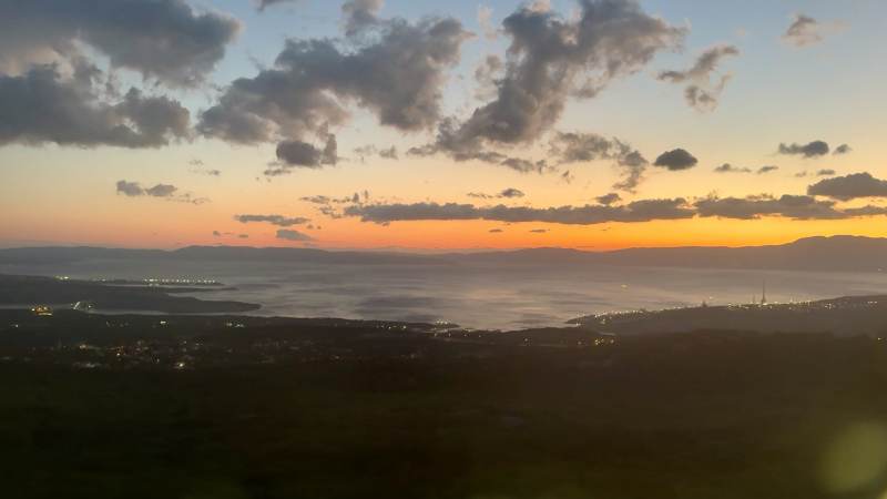 Grandios wird der Ausblick, als sich aus den Bergen kommend der Blick auf die Küste öffnet — Wasser und Sonnenuntergang sind einfach eine unwiderstehliche Kombination.