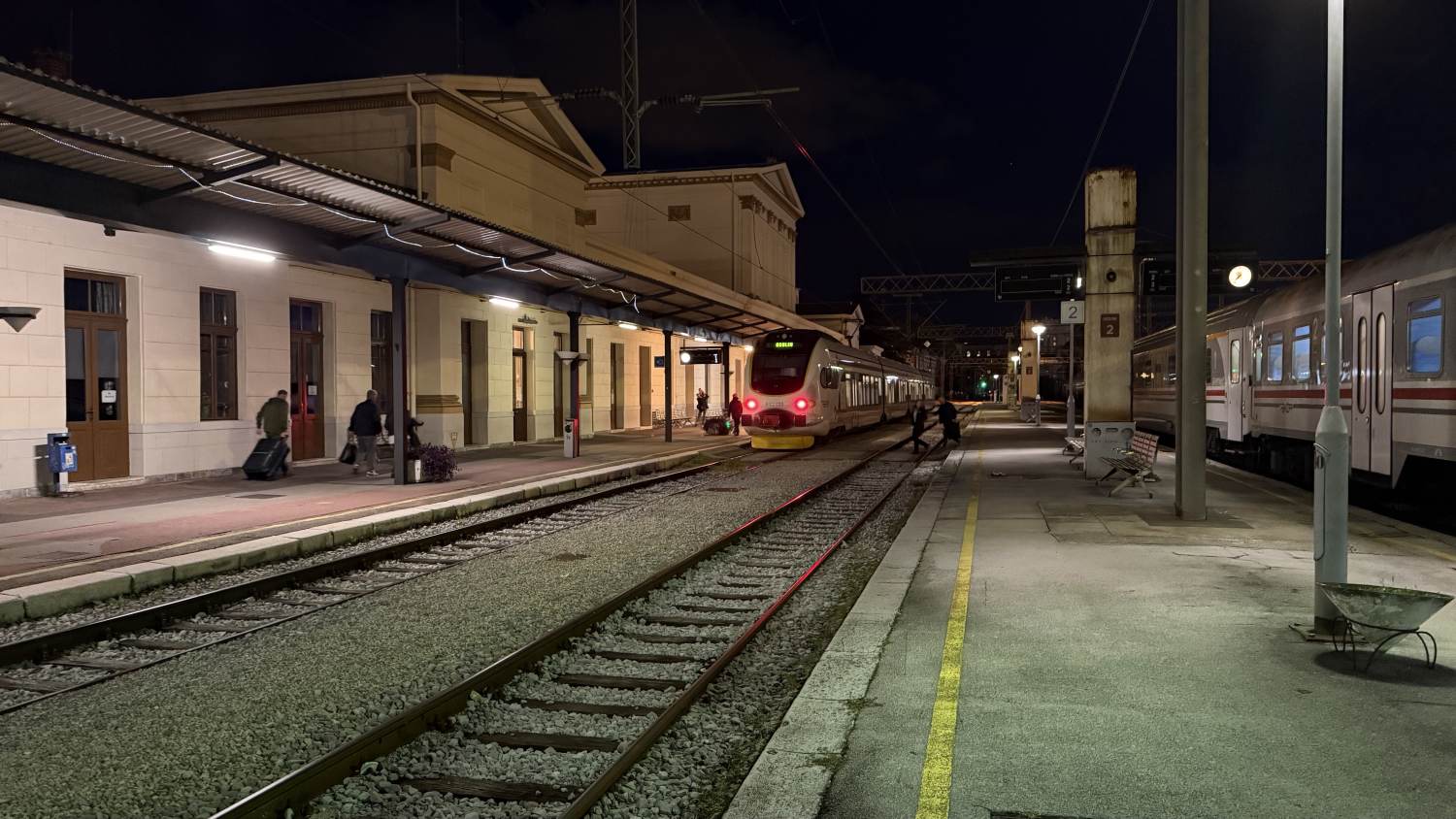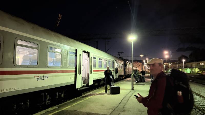 Am Bahnhof gönnen wir uns noch einen kleinen Imbiss mit unseren Einkäufen, die sich als sehr schmackhaft entpuppen. Unser Zug nach Rijeka wird zeitig bereitgestellt, und wir finden schnell Plätze.