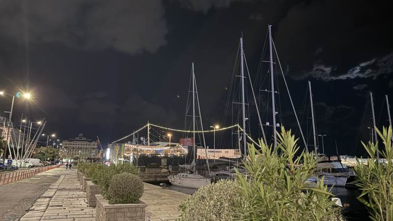 Nach dem Einchecken ist die Altstadt angesagt, um noch eine Kleinigkeit zu essen. Wir landen im gemütlichen Restaurant Maslina, das uns bestens versorgt mit Fisch bzw. Salat … und einer klitzekleinen Portion Mousse au Chocolat …