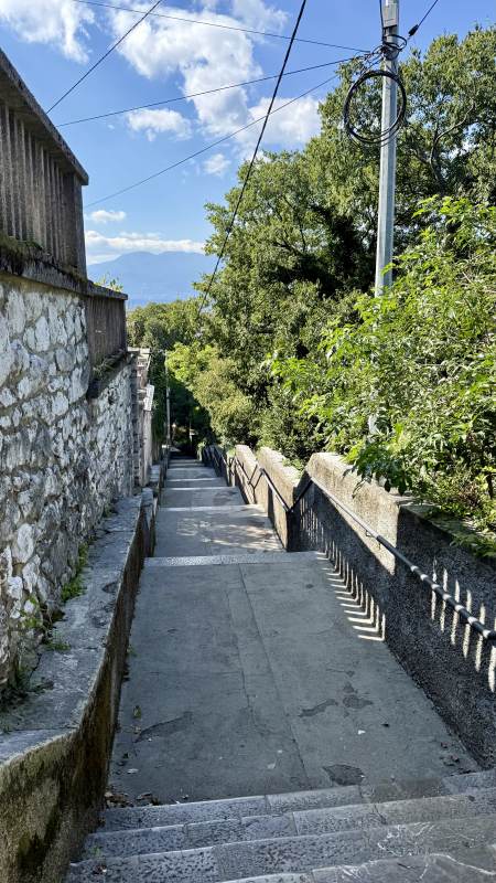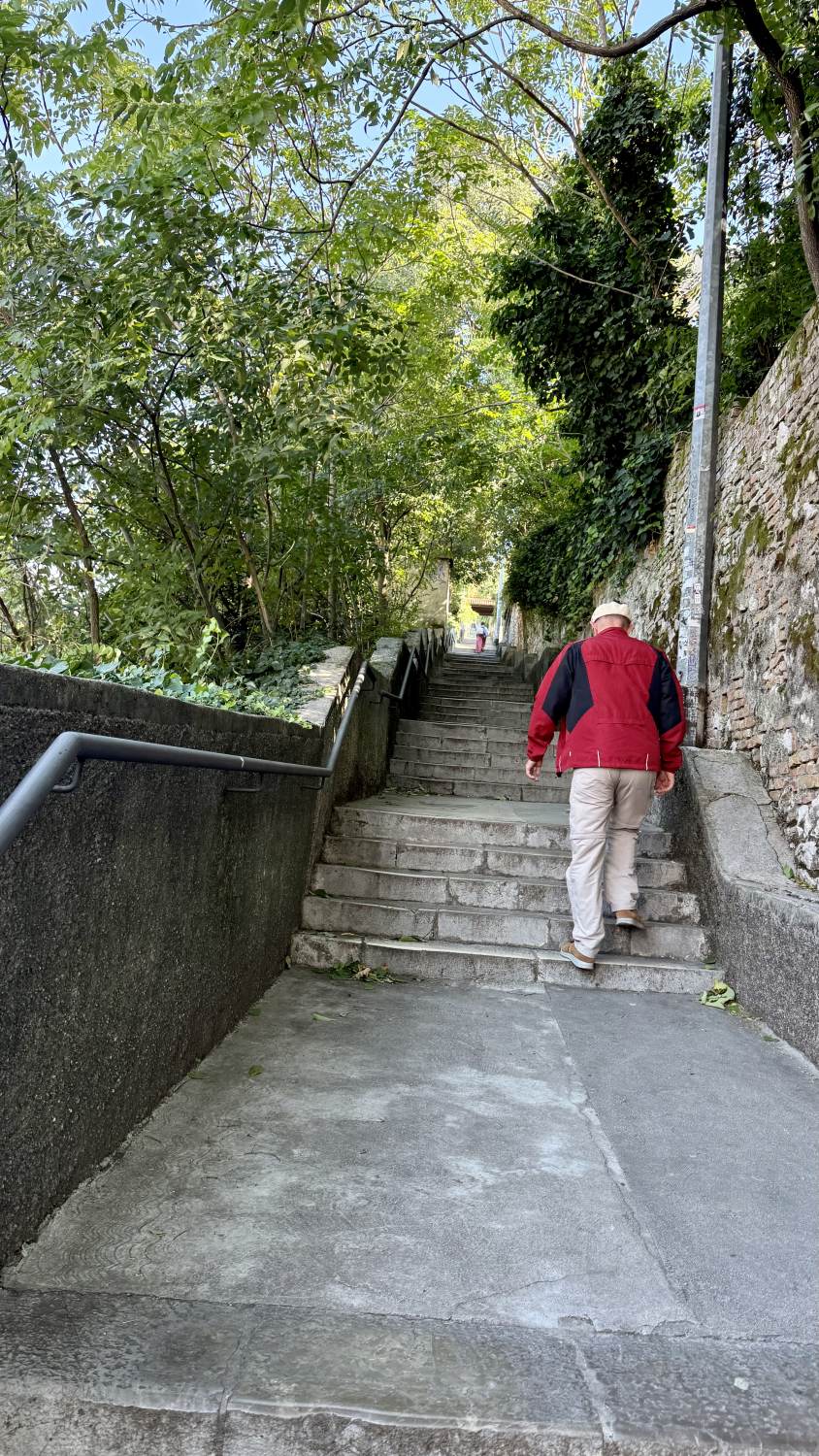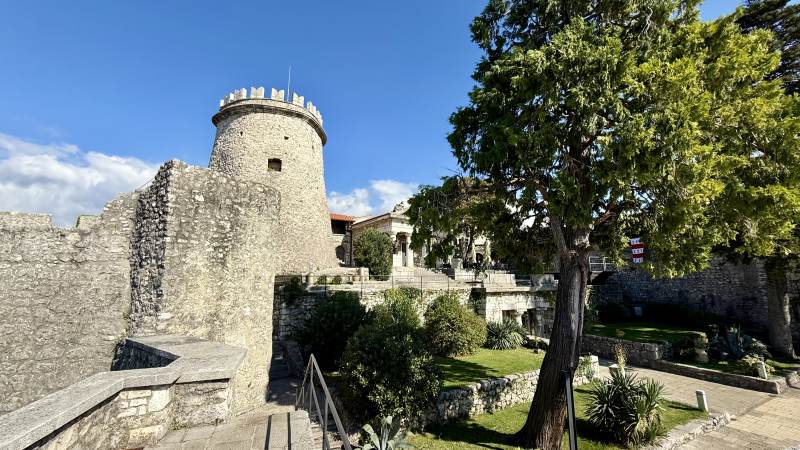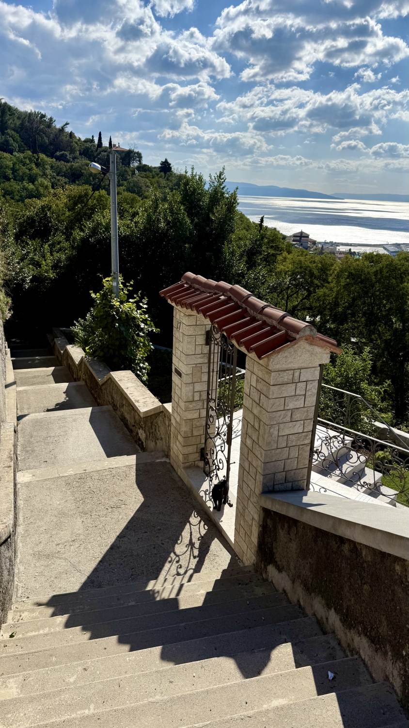Anschließend folgen wir dem Tipp unseres Tour Guides, die Treppen zur Festung Trsat hochzusteigen — bei herrlichstem, wenn auch geradezu stürmischem Wetter (es herrscht der Bora-Wind, der ordentlich Luft in die Stadt bläst) ist das eine hervorragende Idee, der Ausblick ist atemberaubend!