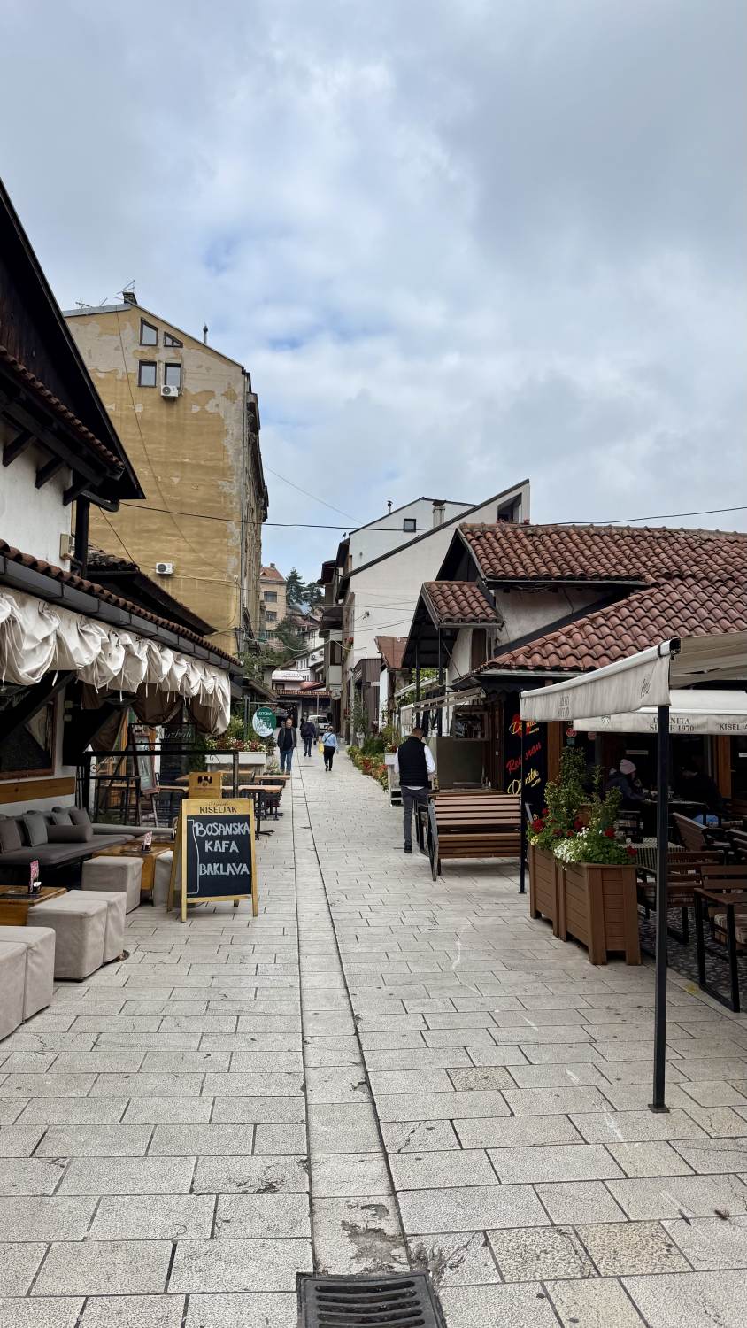 Im Anschluss machen wir uns auf einen Spaziergang durch die Altstadt, die in Teilen wie ein vergrößertes Mostar wirkt, an anderen Stellen aber auch wie eine moderne Großstadt.