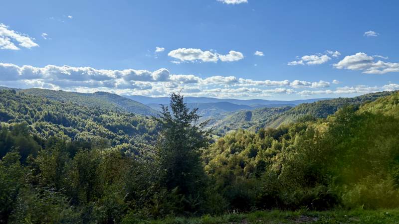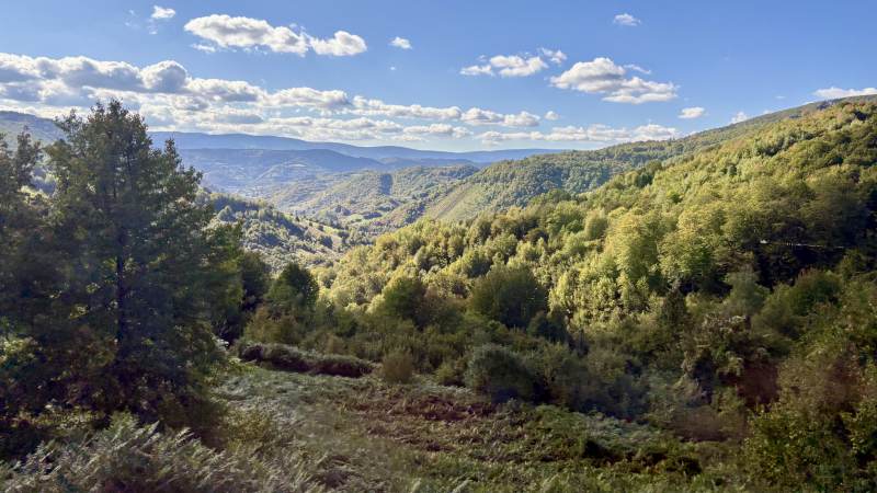 Wir bekommen teils grandiose Ausblicke geboten, aber zum Teil auch halsbrecherische Kurvenfahrten durch die hügelig-bergig-waldige Landschaft.